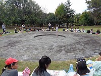 昼食は山梨県立博物館の芝生で「いただきます。」お天気が回復して良かったです。学年で1つの円を作り、楽しく食べました!
