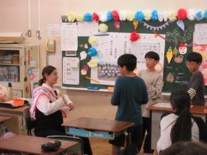 5年2組 送別会の様子(10月31日) 2025年10月31日 学級担任の先生がお休みに入る前に,クラスの人たちがお楽しみ会(送別会)を準備、実施してくれました。 温かく和やかで、とてもよい雰囲気でした。 学校からのお知らせ