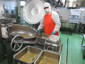 明野金時が入った「ごまみそ汁」です。さつまいもの甘みとごまの風味がよく合います。