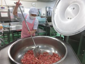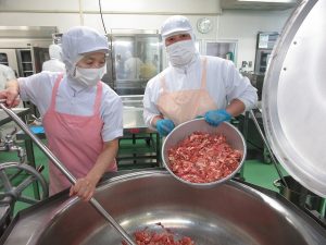 下味をつけた豚肉を丁寧にふっくらと炒めます。