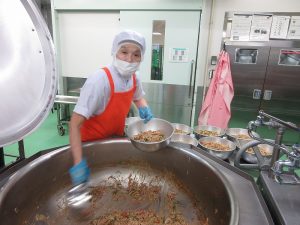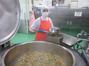 今日の給食は、ピーマンがおいしく食べられる「チンジャオロース」です。