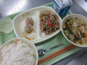 献立は、ごはん チンジャオロース しゅうまい サンラータン はちみつレモンゼリー 牛乳でした。