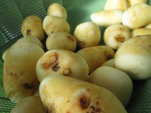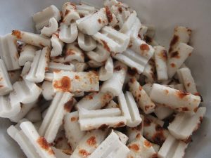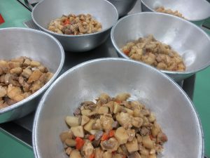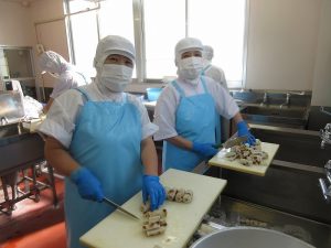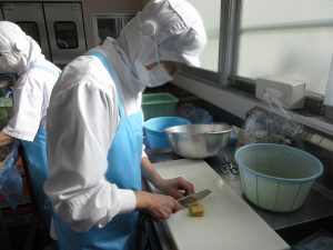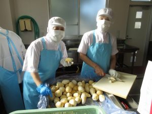 「芋炊き」の里芋は甲斐市の特産物「やはたいも」です。とても大きくておいしい里芋でした。そして、色々な材料を丁寧に切りました。