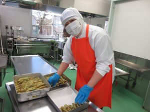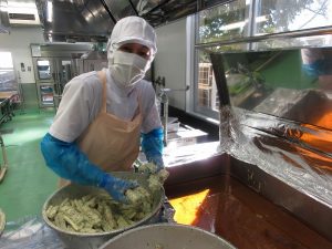 「芋炊き」は愛媛県の郷土料理です。担任の先生が愛媛県出身で、秋によく食べた大好きなメニューだそうでうす。野菜もたくさん食べられて、体も温まるので、これからの季節においしい料理です。