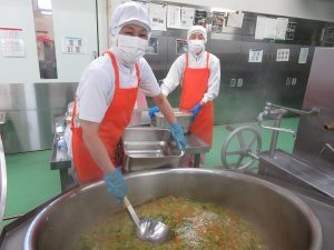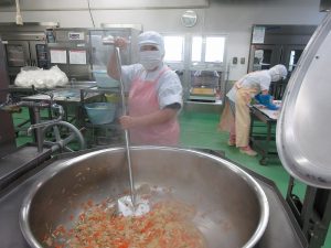 今日は、甲斐市として山梨県食品衛生協会の方に、給食室の衛生管理を見ていただく日でした。食材の納品から野菜の洗浄、調理作業、器具の洗浄、施設設備に関わることについて、気づいた点や改善点など専門性をもって客観的にご指導いただきました。子どもたちの安心安全でおいしい給食のために、これからも給食室一同、衛生管理に努めていきたいと思います。