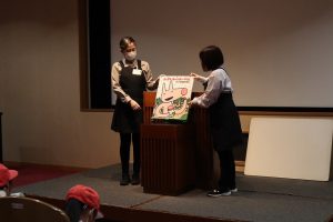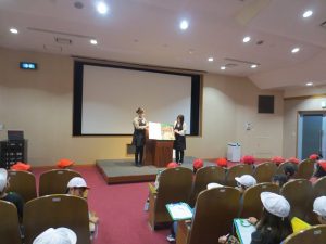 最後のお話会では、大型絵本の読み聞かせをしていただいたり、パネルシアターを見せていただいたり、楽しい時間を過ごすことができました。今回の見学で学んだことをしっかり復習していきたいと思います。