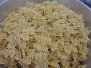 「マカロニソテー」のリボンの形をしたマカロニです。