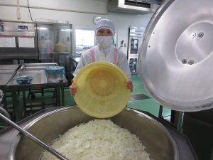 今日の給食は、玉ねぎをじっくり炒めてよく煮こんだ「ハヤシライス」です。