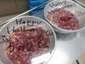 明日は5年生の校外学習です。給食を食べない5年生のために、1日早い「ハロウィン」気分を届けました。