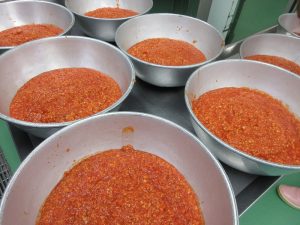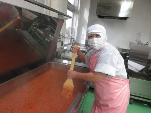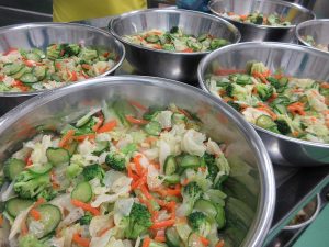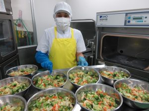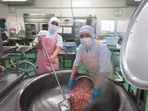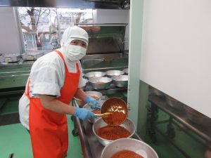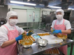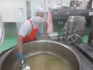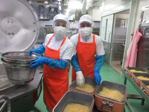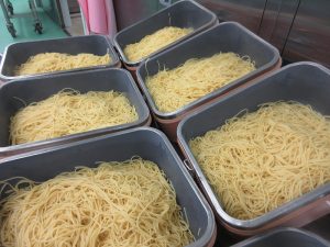 「スパゲッティ」をゆでて、クラスごと配食します。