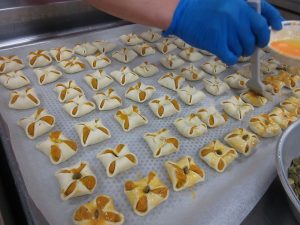 パイ生地で包みながら、ひとつひとつ形を作っていきます。