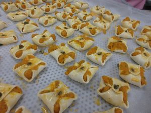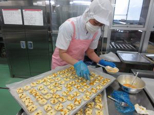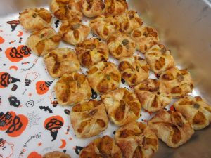 子どもたちは、今日のパンプキンパイをよく食べていました。小さなパンプキンパイでしたが、ひとつひとつの作業に手間暇をかけるため、出来上がるまでにとても時間がかかりました。上手に完成させようと、心をこめてつくった思いは、子どもたちに届いたのかなぁと思います。