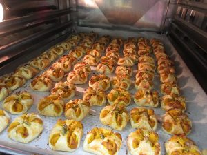 つや出し用に卵液を表面にぬって、オーブンで焼きました。