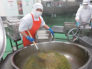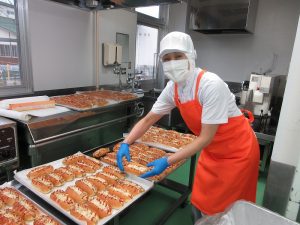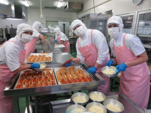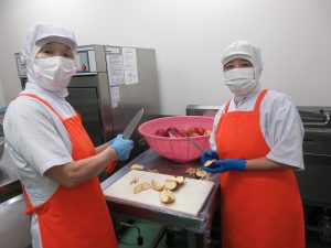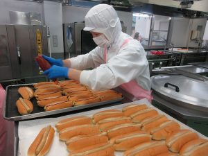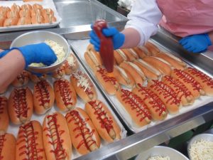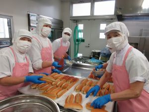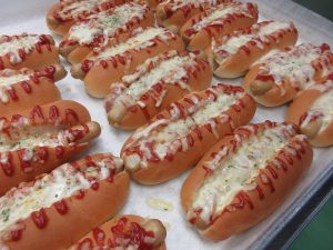 子どもたちは、ホットドッグを大きな口で、ガブリッと食べていました。よく噛む習慣が身につくように、子どもたちに噛むことの大切さを伝えていきたいと思います。