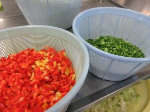 「スパゲッティソテー」のパプリカとピーマンです。小さな四角に切りました。