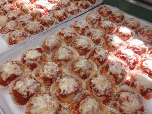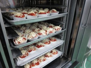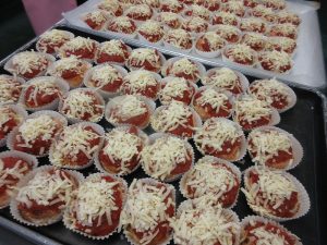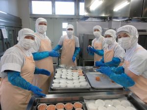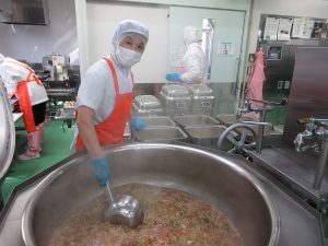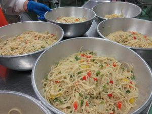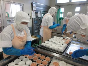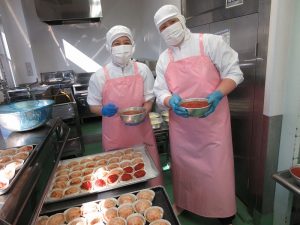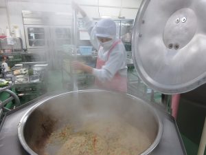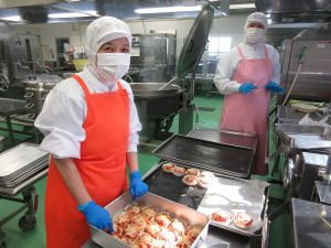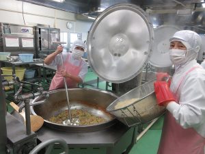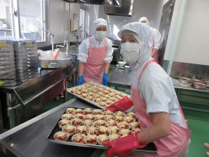 上に重ねるとつぶれてしまうので、入れ物の蓋も使って配食しました。
