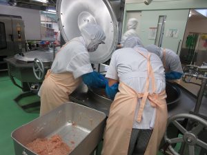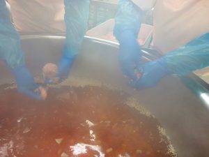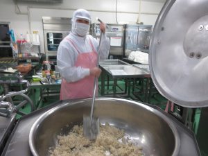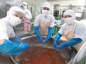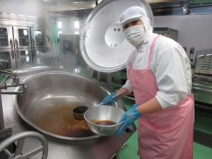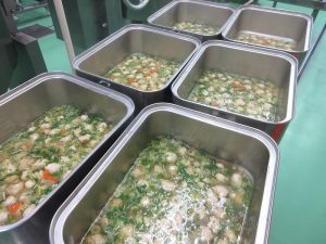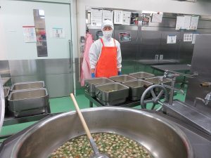 今日の給食は、お汁の中にひとつひとつ落としてつくった「鶏だんご汁」です。