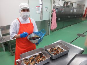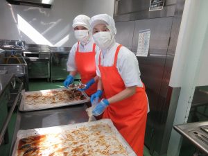 今日は「ごはんに魚、煮物、お汁」と和食のメニューでした。子どもたちは、ごはんを味つけ海苔でくるんでよく食べていました。和食のおいしさを伝えてきたいと思います。