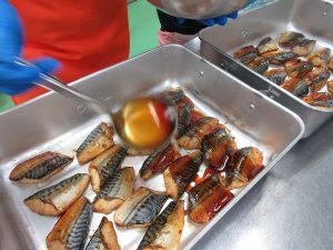 照り焼きのたれをつくります。焼いた魚の上にかけて出来上がりです。