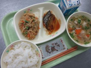 献立は、ごはん 味つけ海苔 さばの照り焼き 切り干し大根の炒め煮 鶏だんご汁 牛乳でした。