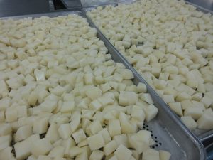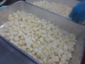 「ベーコンポテト」のじゃがいもを切って、オーブンで蒸しました。