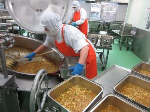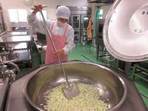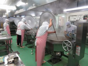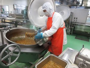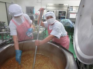 「カレーうどん」は、2つの回転釜を使ってつくります。