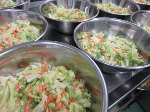 「コールスローサラダ」はシャキシャキとしたキャベツがたくさん入っています。淡い緑色がきれいなサラダです。