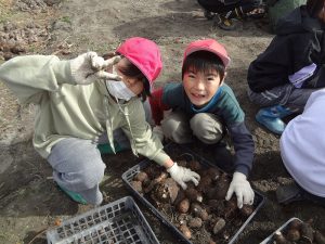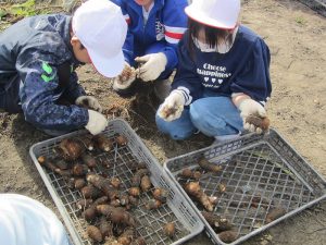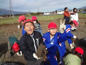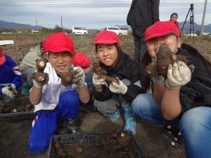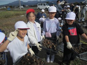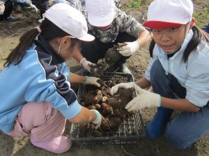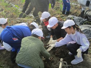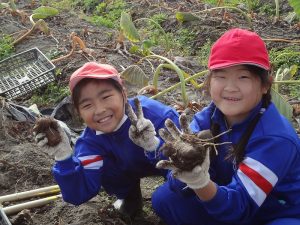 ☆11月11日(火)食農体験で「やはたいも」を収穫している3年生の様子です!