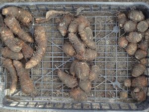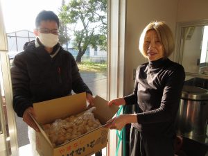 朝7時40頃頃、3年生がお世話になった中北農務事務所の方が「やはたいも」を届けてくれました。3年生の収穫した「やはたいも」を農家の方が皮をむいてくれたそうです。味が落ちてしまうからと、竜小の子どもたちのために、今朝早くに皮をむいてくれました。