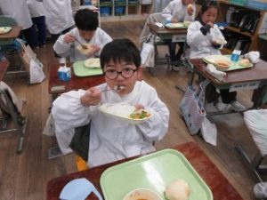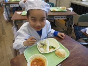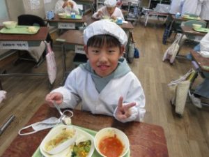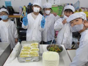 3年生が収穫した「やはたいも」を給食室で心を込めてグラタンにしました。全校でおいしく味わうことができたと思います。
