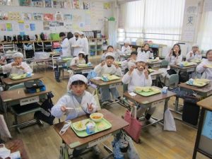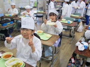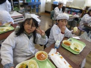 みんなで楽しそうに食べていました。農家の方々や収穫に関わっていただいた人たち、そして実った作物に感謝したいと思います。