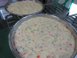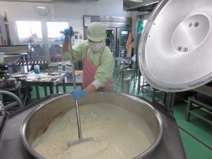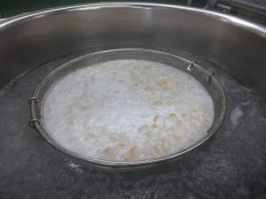 そして、グラタンのホワイトソースを作ります。ゆでた「やはたいも」と合わせました。