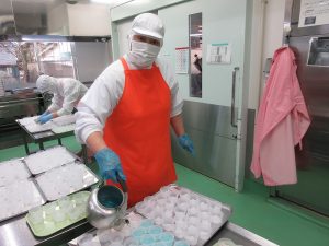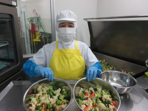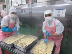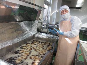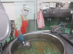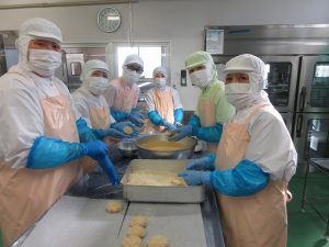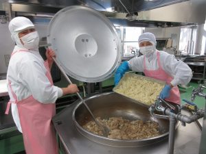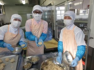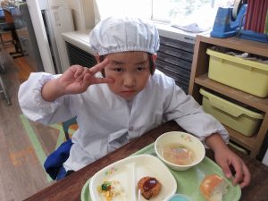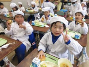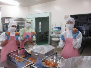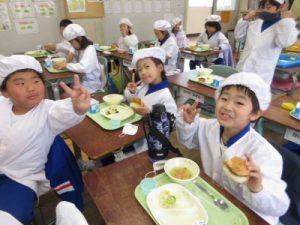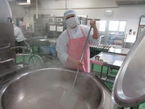 給食室の調理員さんたちは、本とコラボ給食のためにたくさん協力してくれました。日ごろからいつも子どもたちを思って支えていただき、感謝しています。