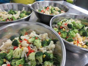 ブロッコリーの緑、カリフラワーの白、パプリカの赤でいろどりカラフルなサラダです。