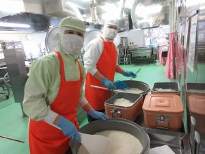子どもたちは、白いごはんにのせて食べていました。