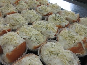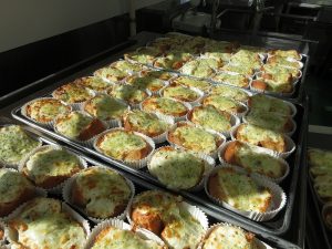 チーズをのせて、パン粉をふったら、オーブンで焼きます。