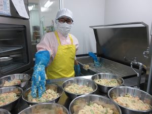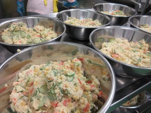 今日のポテトサラダは、カレー粉入りです。少しスパイシーなポテトサラダになりました。