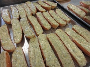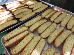 「ガーリックトースト」です。ほんのり甘くやわらかいミルクパンに、ガーリックバターをぬります。