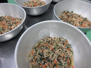 今日の給食は、野菜やお肉がたくさん食べられる「ビビンバ」です。