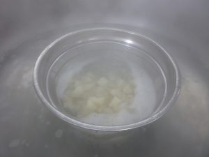 まず、魚にかけるソースをつくります。じゃがいもは、ゆでてマッシュし、みじん切りの玉ねぎやコーン、マヨネーズなどと一緒に混ぜ合わせます。