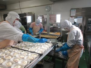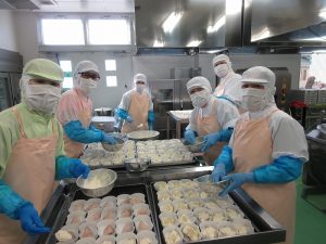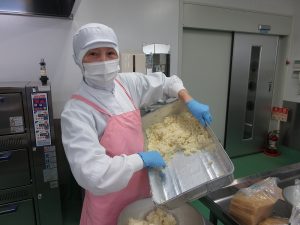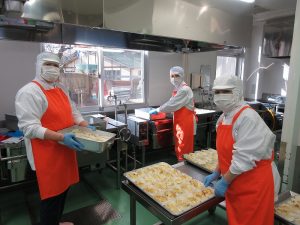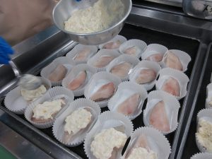 今日の給食は、白身魚を使ったパン粉焼きです。