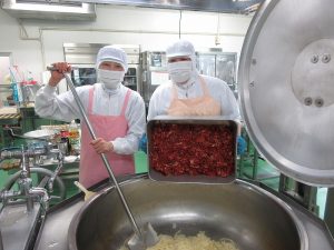 そんなに辛くないキムチ味の和え物です。子どもたちにも人気でした。