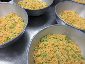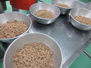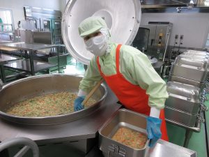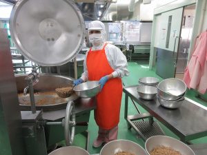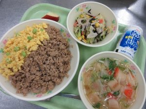 今日の給食は、そぼろと炒り卵をのせた「そぼろ丼」です。