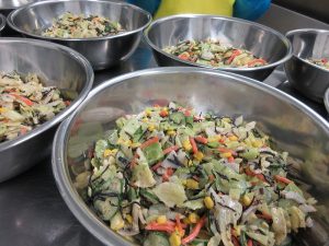 「ひじきサラダ」は、レンコンのシャキシャキとした食感があるサラダです。ごま風味で野菜がおいしく食べられます。