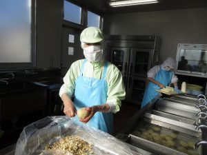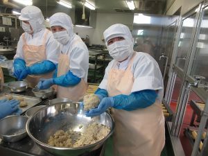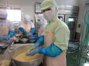 今日の給食は、愛情をこめた「手作りコロッケ」です。