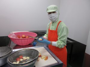 今日のデザートの果物は、長野県産の「りんご」です。甘みと酸味のバランスのよいりんごでした。