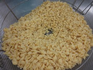 最後に、貝殻の形をした「シェルマカロニ」を入れて仕上げます。