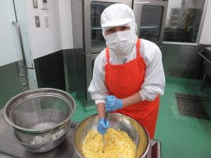 「ひじきの炒め煮」です。ひじきが苦手な子どもたちが多いので、食べやすくするため、ひき肉を入れました。