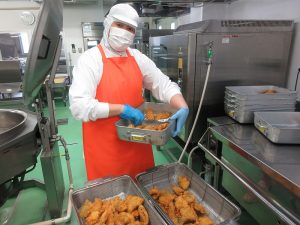 今日の給食は、タルタルソースと食べる「ホッケのフライ」です。