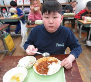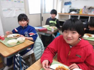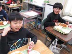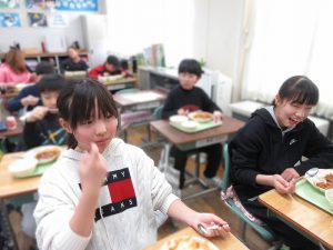 たのしい雰囲気で給食を食べています!いつも「おいしいです」と言葉で伝えてくれて、とても嬉しいです。